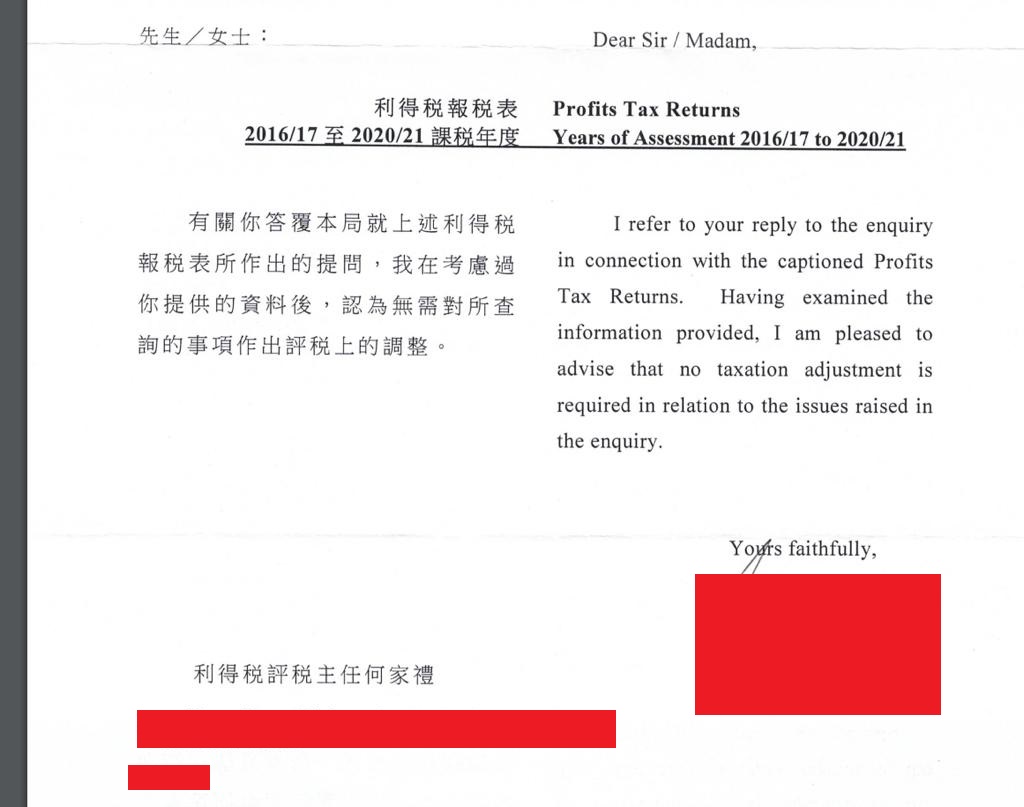 Hong Kong IRD was not satisfied with the response and issued another inquiry letter. At this point, the client reached out to us to request our help. The client was frustrated that there were a number of inquiries issued by Hong Kong IRD. However, the client failed to convince Hong Kong IRD of their offshore claim position.